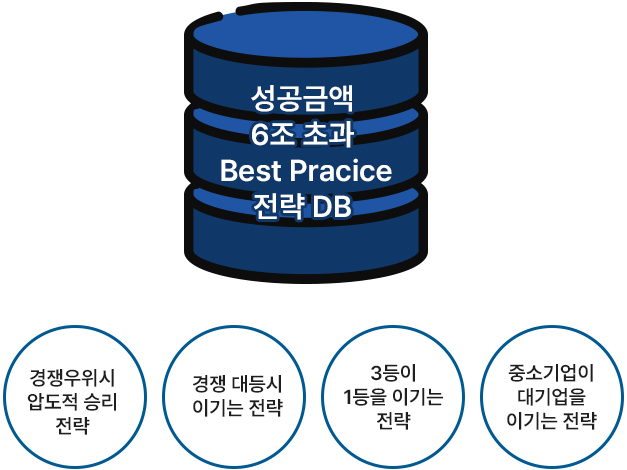 다양한 경쟁 상황에서 이긴 성공 사례를 통해 보유한 전략 DB를 원용 및 적용하여 고객이 마주한 경쟁 상황에 맞게 이길 수 있는 전략을 수립합니다.