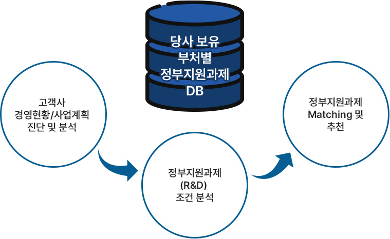 당사가 보유하고 있는 각 부처 정부지원과제 DB를 활용하여
