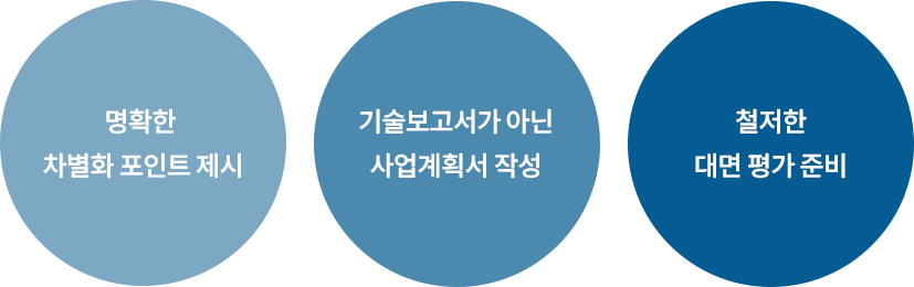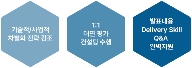 기술적 /사업적 차별화 전략이 강조될 수 있도록 대면 평가 발표 컨설팅 수행